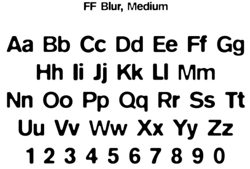 FF Blur (1992) by Neville Brody, published by FontShop.